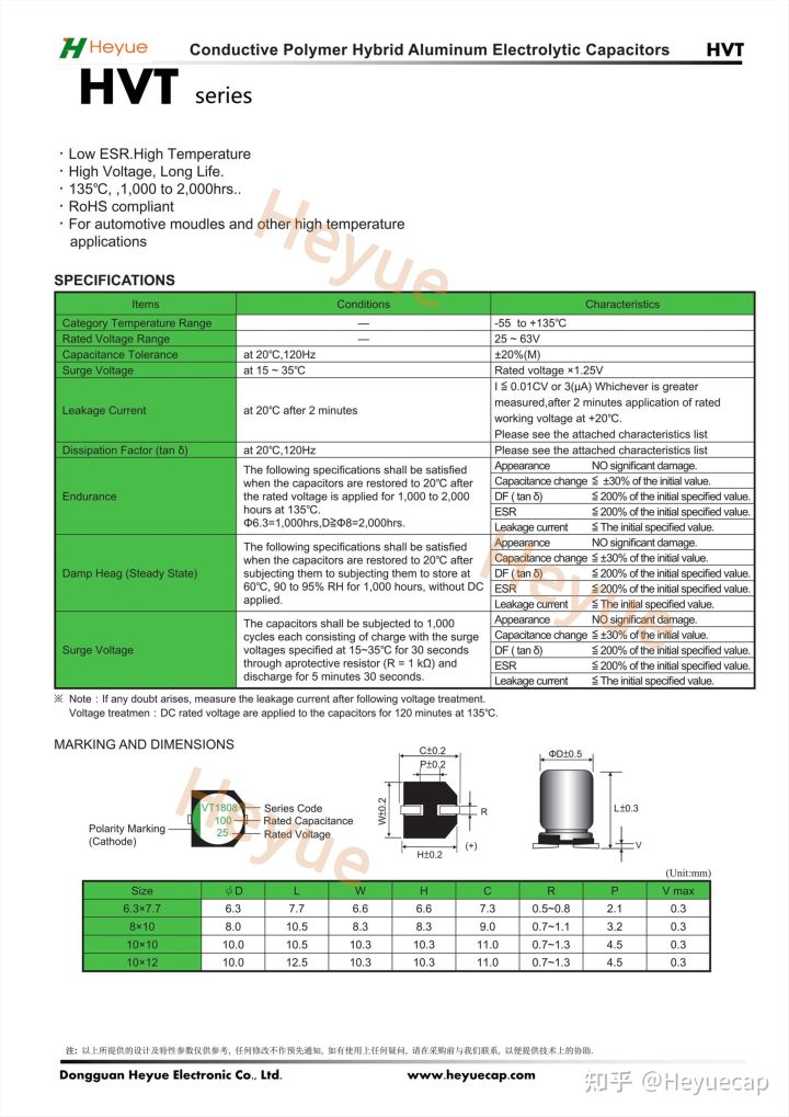 合粤之前发布了HVA系列(额定温度105°C,持续10000小时)和HVG系列(额定温度125°C,持续4000小时),现在随着HVT系列的发布,其额定温度范围高达135°C。